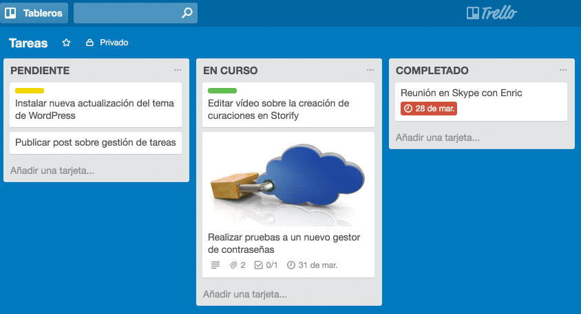 Trello es una herramienta de productividad muy intuitiva que permite hacer desde una lista de compras, hasta el desarrollo de negocios de alto crecimiento. En ella es posible configurar tableros con columnas, a los que se les pueden asignar diversas tareas, permitiendo que cada una de esas tareas, sea posible moverla a otras columnas o tableros con facilidad. También se pueden etiquetar las tareas con los nombres de otros usuarios para fines de delegación, marcando las mismas con colores o status una vez que se completan, realizar comentarios, adjuntar archivos, cargar fotos y videos y trabajar sin conexión. Es una lista de tareas ultra fluida y perfecta, para aquellos usuarios que prefieren hacer un seguimiento de las tareas de la manera más ágil.